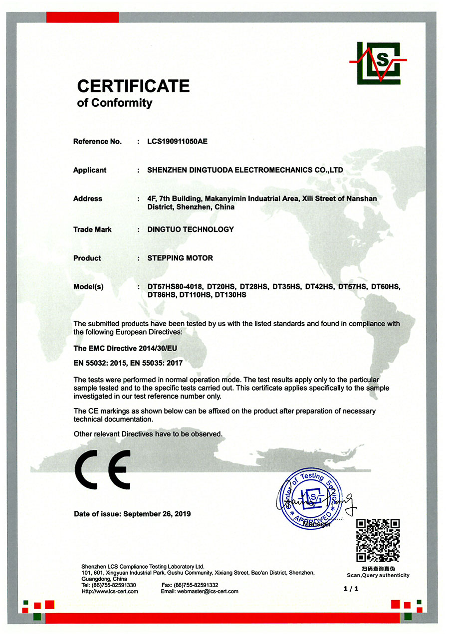 首頁->產(chǎn)品認證->步進電機CE認證證書