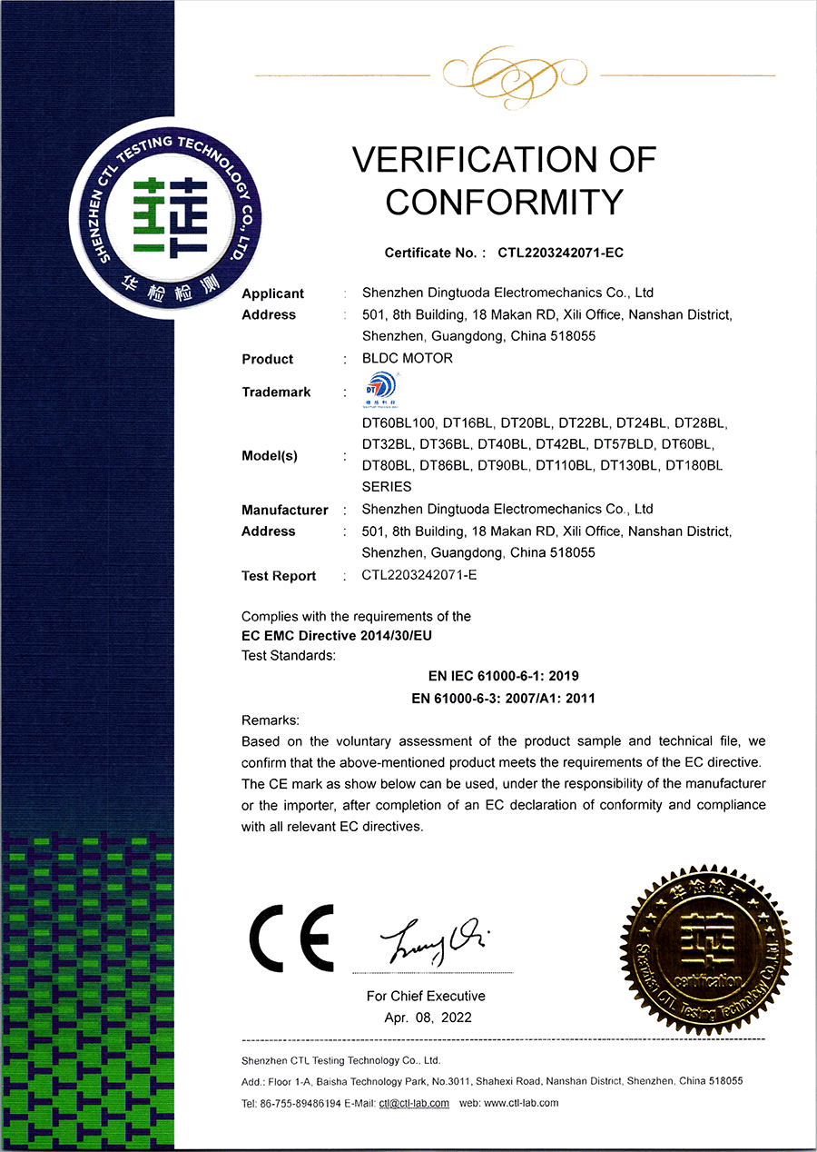 無(wú)刷電機(jī)CE認(rèn)證證書(shū)