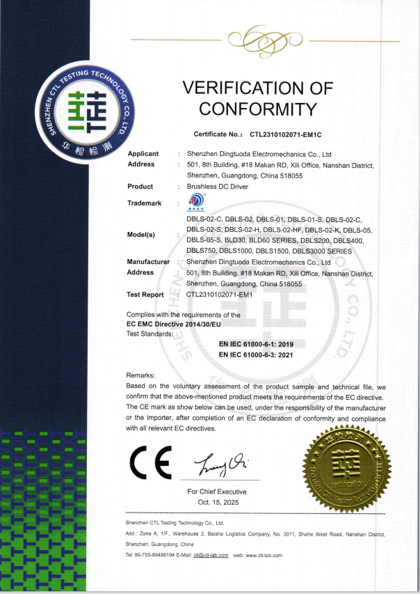 無刷驅(qū)動(dòng)器CE證書