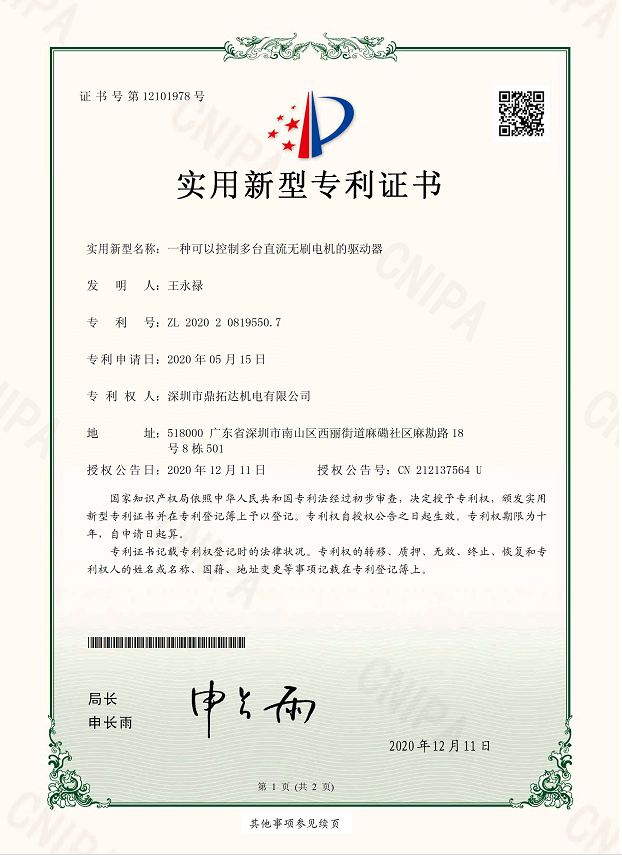 首頁->產(chǎn)品認(rèn)證->一種可以控制多臺直流無刷電機(jī)的驅(qū)動器
